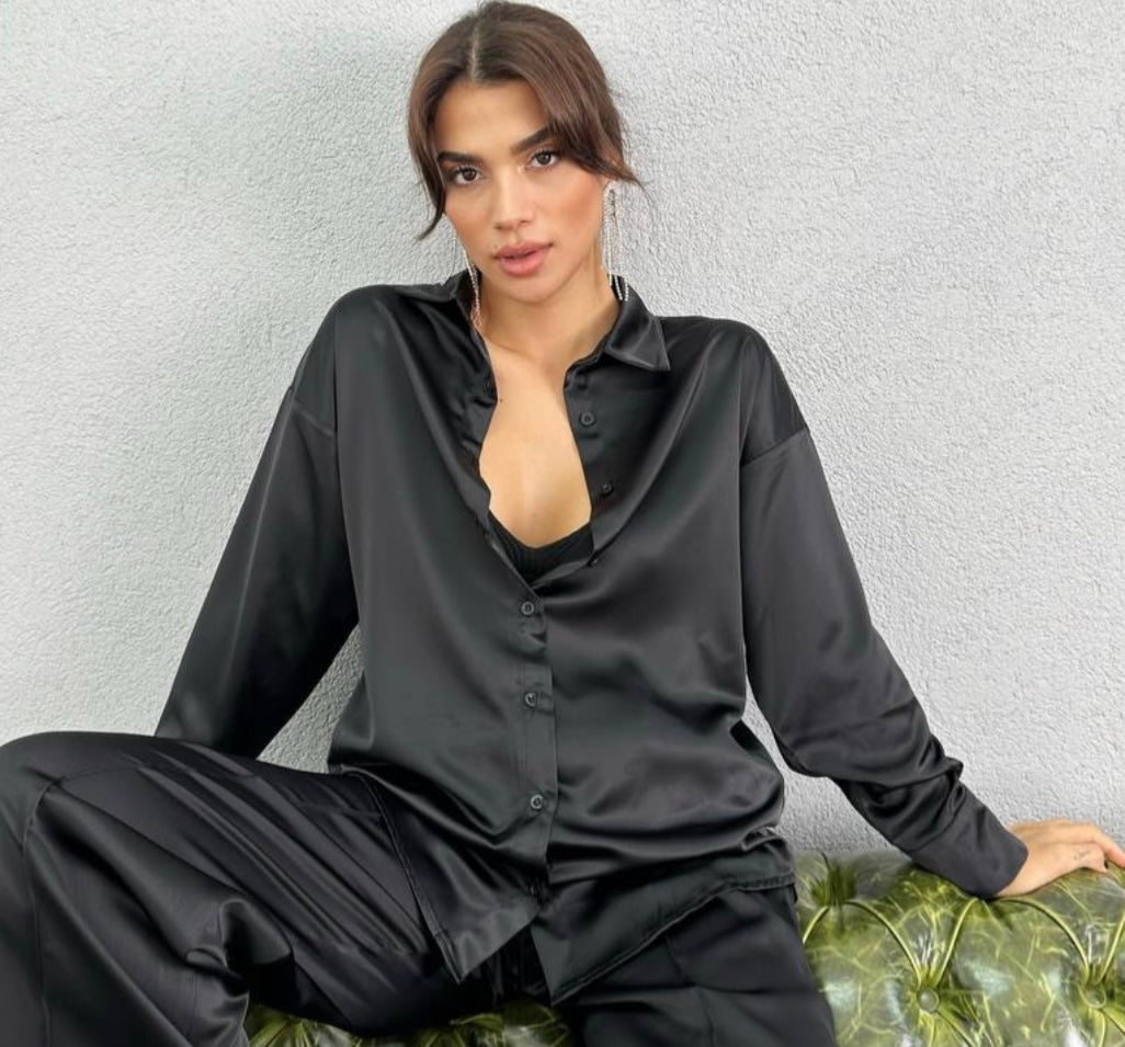 Elevate your wardrobe with this luxurious black satin shirt, crafted from premium-quality fabric with a soft, silky touch and a subtle natural shine. Designed to drape beautifully on the body, it offers a refined silhouette that feels as good as it looks. The timeless cut and elegant finish make it a versatile piece, perfect for both formal occasions and sophisticated everyday styling. Wear it tucked into tailored trousers or styled effortlessly with skirts or denim for a chic, polished look. A true statement of class, quality, and timeless elegance.